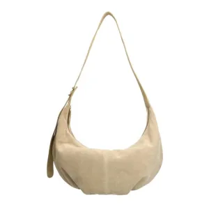 Manfield – Dames – Beige suède loafers met gouden studs –