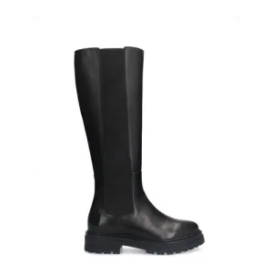 Manfield – Dames – Zwarte leren hoge laarzen –