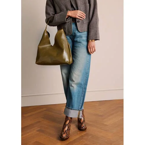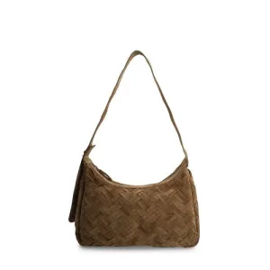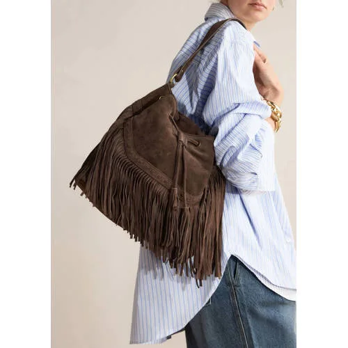 Manfield suède schoudertas donkerbruin