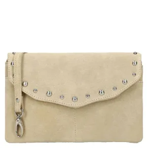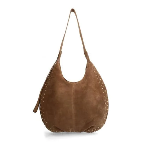 Manfield suede schoudertas met studs bruin