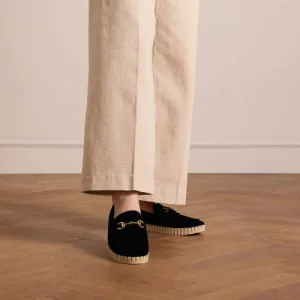 Manfield – Dames – Suède leopard loafers met chain –
