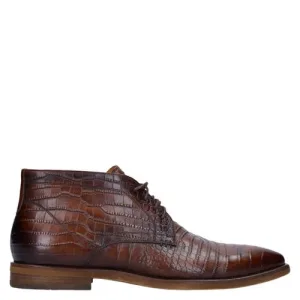 Manfield – Heren – Bruine leren croco veterschoenen –