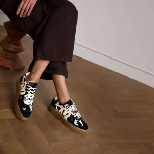 Manfield leren sneakers met ponyhair en koeienprint zwart/wit