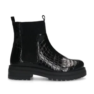 Manfield lakleren chelsea boots met crocoprint zwart