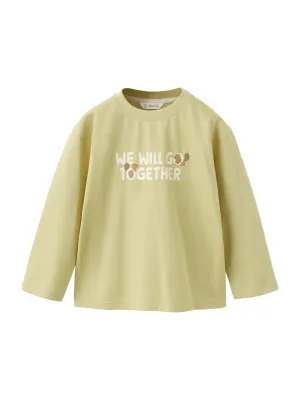 MANGO KIDS Sweatshirt ‘EHAPPY’ kaki / wit