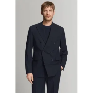 Mango Man manteljas met wol donkerblauw