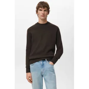 Mango Man trui met wol fijn gebreid donkerbruin