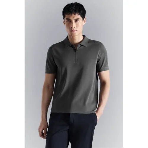 Mango Man trui met wol fijn gebreid kaki