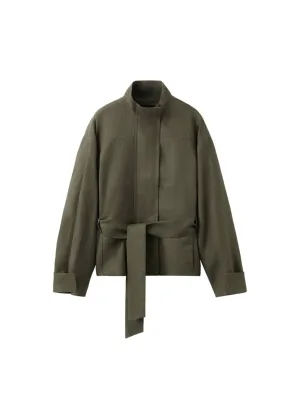 Mango wollen trenchcoat grijs