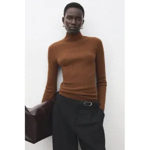Mango gebreide trui donkerbruin