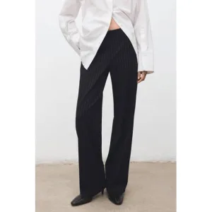 Mango straight regular waist broek met krijtstreep donkerblauw