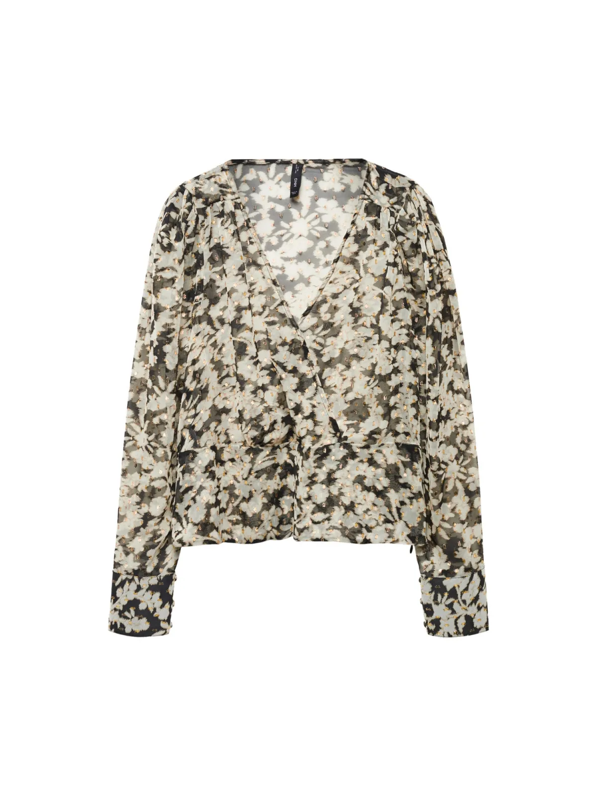 MANGO Blouse ‘YOUTH’ ivoor / karamel / zwart