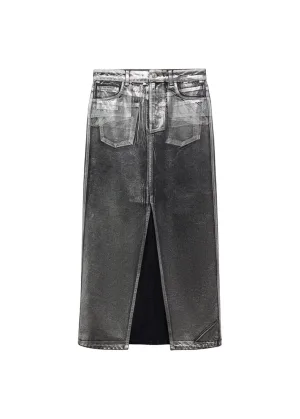 MANGO Rok ‘Shimmer’ zilvergrijs / black denim