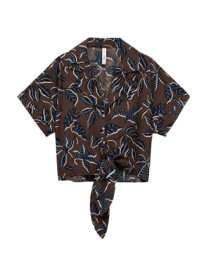 MANGO Blouse ‘LIFE’ lichtbeige / blauw / marine / bruin
