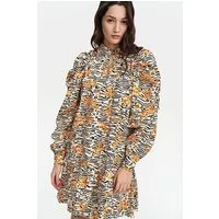 Marcell von Berlin Gathered Volant Dress Wild Print Orange