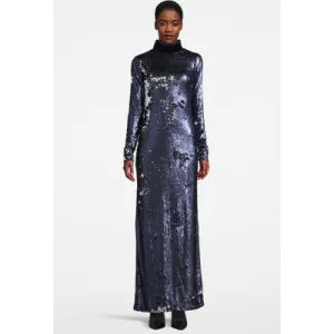 Marcell von Berlin Women‘s Maxi Sequin Dress With High Collar Navy, Silver
