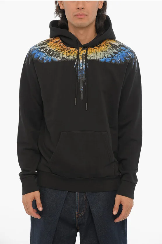 Geborstelde katoenen LUNAR WINGS hoodie in zwart