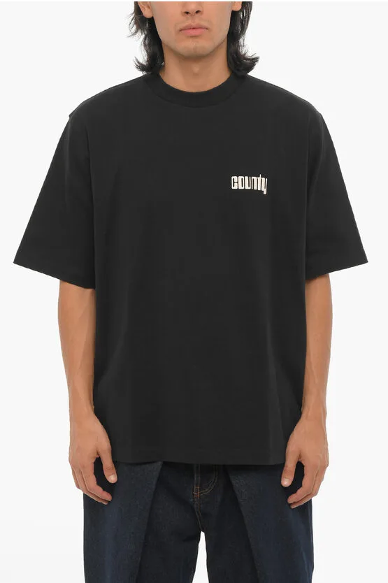 Bedrukt DISCO GOD T-shirt met ronde hals in zwart