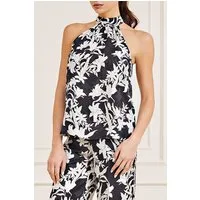 GUESS Lewis Mesh Top Black Beauty Blouse Print