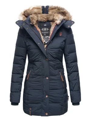 Marikoo dames winterjas Lotusblüte met teddyvoering & imitatiebontkraag