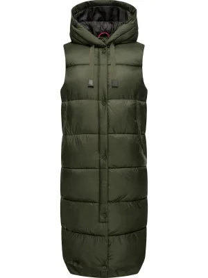 Marikoo dames gewatteerd vest – Eisflöckchen met capuchon & imitatiebontkraag