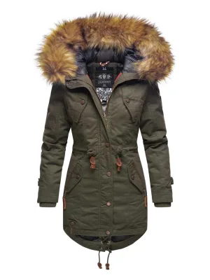 Marikoo dames winterparka met afneembare imitatiebontkraag & capuchon