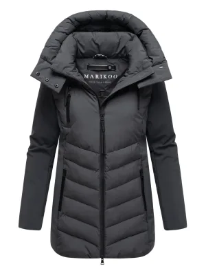 Marikoo dames gewatteerde mantel Firella met capuchon & tweewegrits