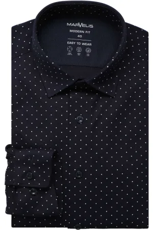Marvelis Performance Modern Fit Overhemd marine, Stippen