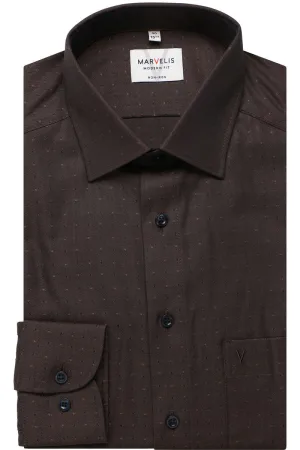 Marvelis Modern Fit Overhemd bruin, Faux-uni