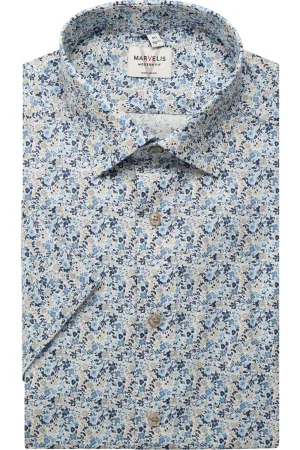 Marvelis Body Fit Overhemd wit/blauw, Motief