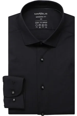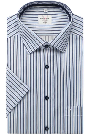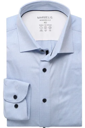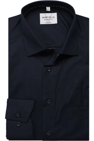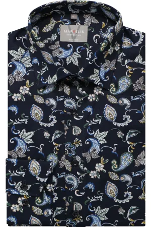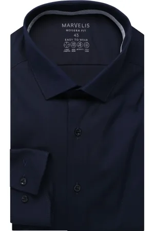 Marvelis Dynamic Flex Body Fit Overhemd nachtblauw, Motief