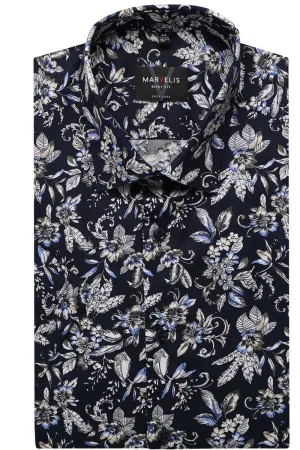 Marvelis Body Fit Overhemd marine, Motief