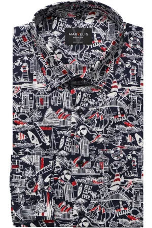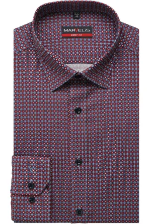 Marvelis Body Fit Overhemd blauw/rood, Motief