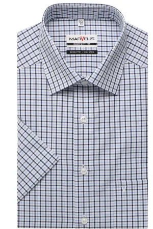 Marvelis Heren poplin modern overhemd met korte mouwen