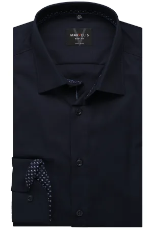Marvelis Body Fit Overhemd Marine, Effen