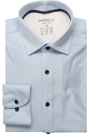 Marvelis Performance Body Fit Overhemd blauw/wit, Motief