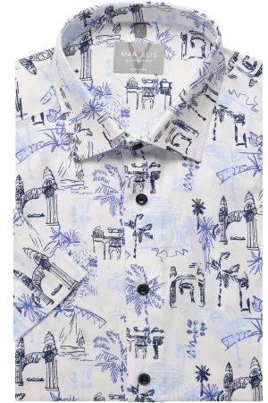 Marvelis Comfort Fit Overhemd Korte mouw blauw/wit