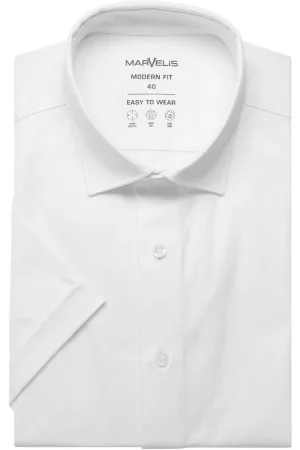 Marvelis Heren poplin comfort overhemd met korte mouwen