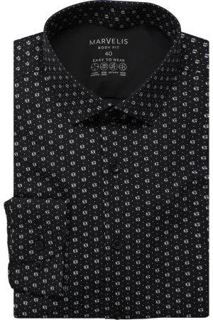 Marvelis Performance Body Fit Overhemd marine, Motief