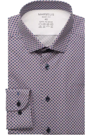 Marvelis Performance Body Fit Overhemd blauw/rood/wit, Motief
