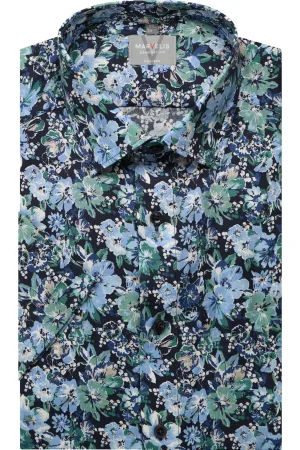 Marvelis Body Fit Overhemd blauw/groen, Bloemen