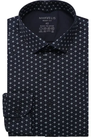 Marvelis Body Fit Overhemd groen, Motief