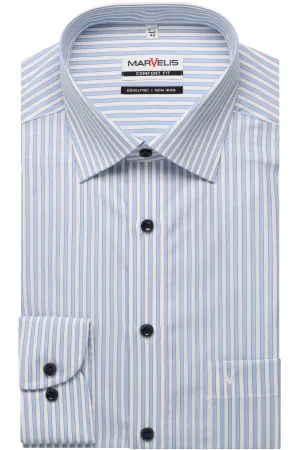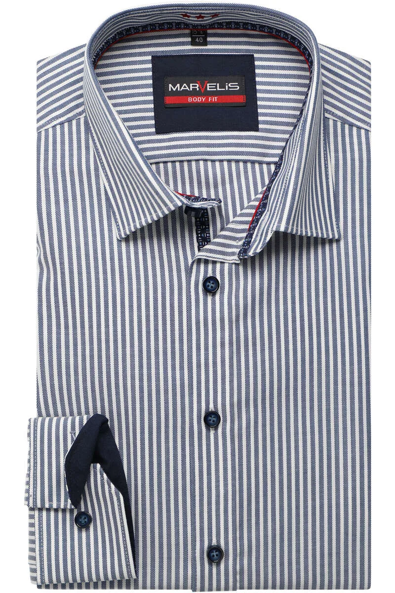 Marvelis Body Fit Jersey shirt wit/blauw, Gestreept