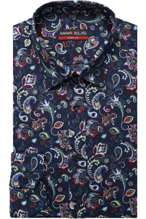 Marvelis Body Fit Overhemd marine, Motief