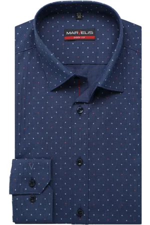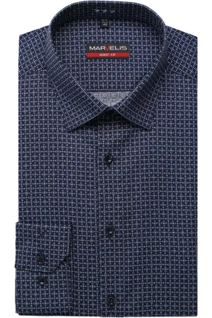 Marvelis Body Fit Overhemd marine, Motief