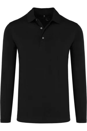 Marvelis Casual Poloshirt lange mouw zwart, Effen