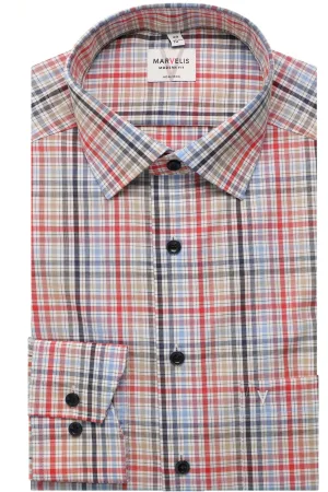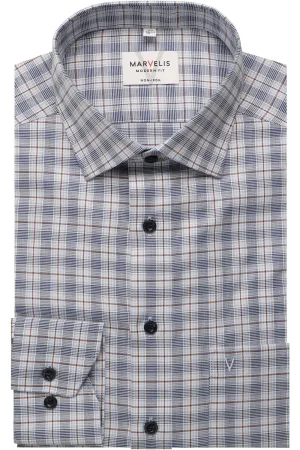 Marvelis Modern Fit Overhemd bruin, Herringbone