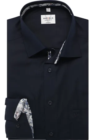 Marvelis Body Fit Overhemd zwart, Motief