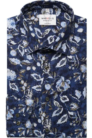 Marvelis Modern Fit Overhemd marine, Motief