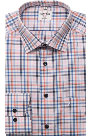 Marvelis Performance Body Fit Overhemd marine/wit, Ruit